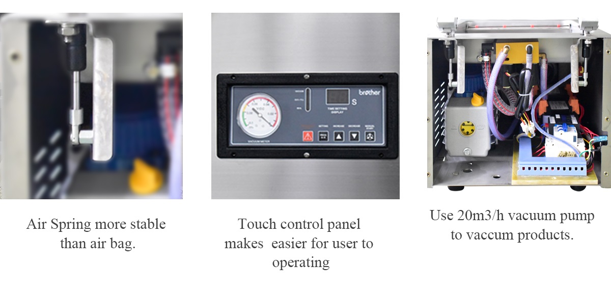 These series of vacuum machine with vacuum sealing, complete function, and applicable to all kinds of packaging materials, it also can be adjusted