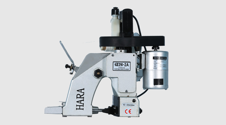 GK 26-2 A model portable bag closing machines are designed specially for industries such as chemical, building material, chemical, fertiltzer, food processing, post, telecommunications, dock , warehouse and bag making. Able to produce a single chain stitch which is elastic and easy to tear off, the machine is slim. Placed in operation for sewing various of fully packed bags.