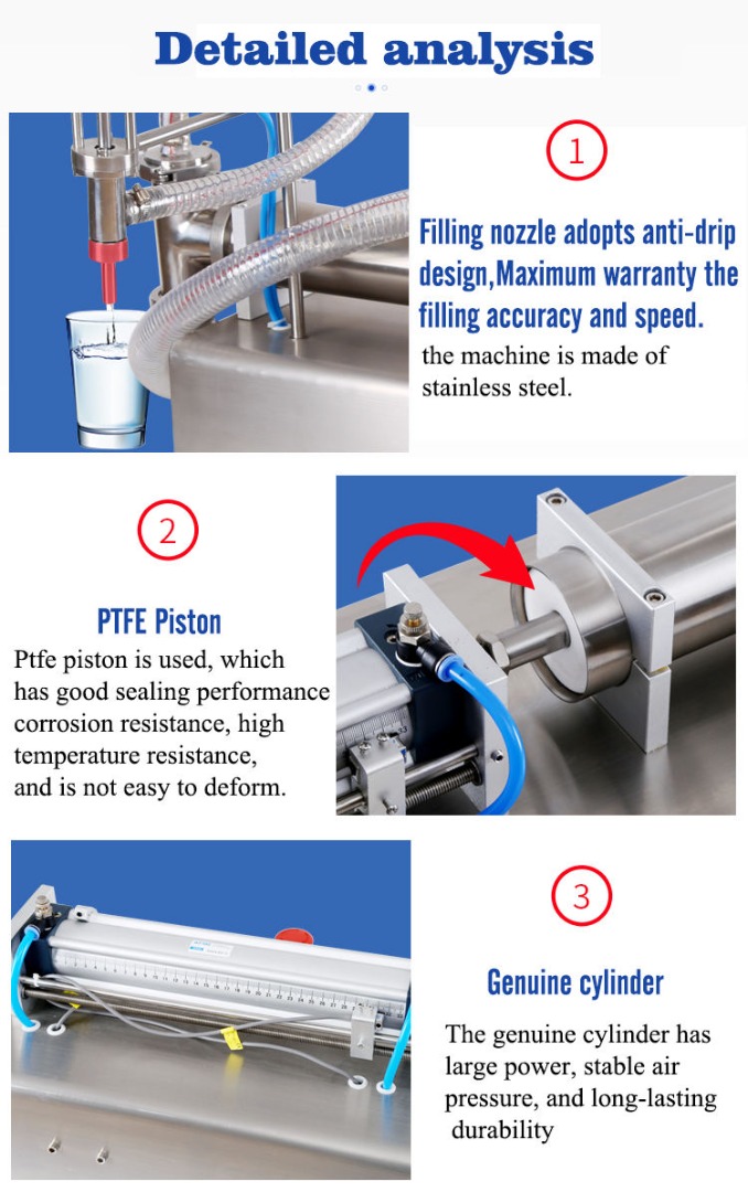 ◆This machine is the semi-automatic piston type filling machine, working under the state without electricity,it is sater to operate.