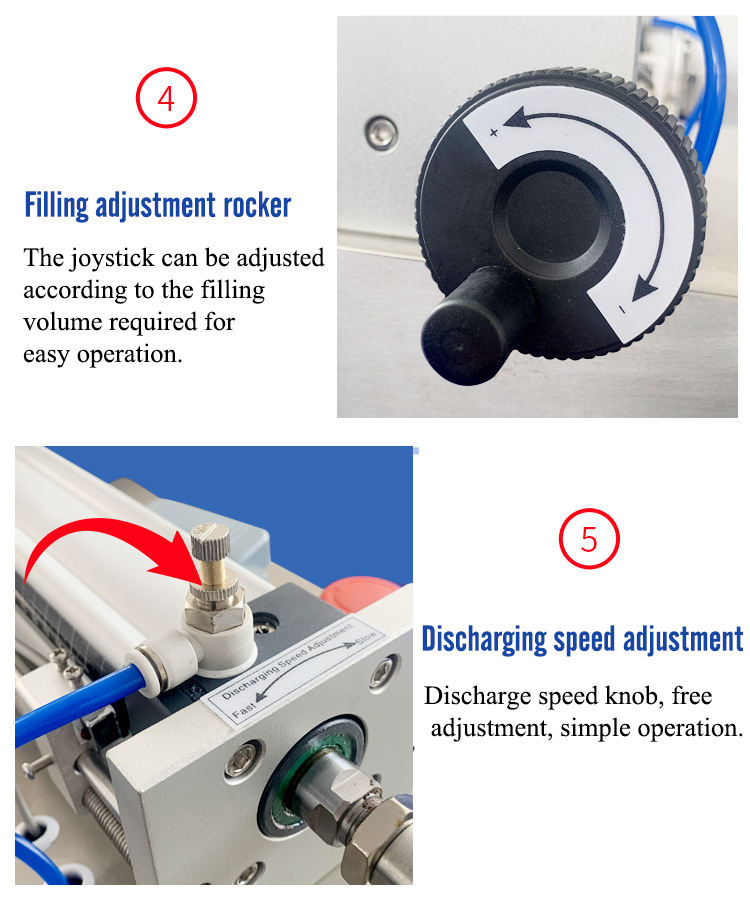 ◆With adjustment handle of filling volume, the filling speed can be adjusted at will, with high filling accuracy,