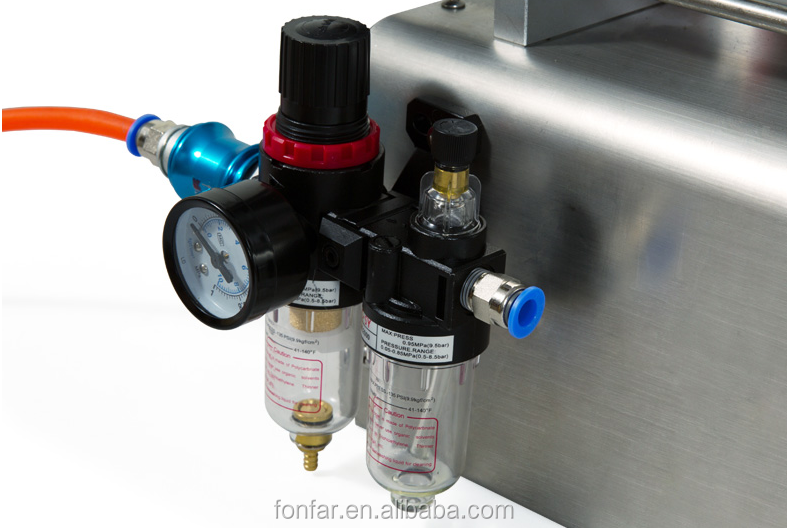 This machine is the semi-automatic piston filling machine. Driven by a cylinder and piston made from materials with three-way valve control the flow of liquid and magnetic reed switch controlling cylinder itinerary can regulate filling volume.This piston filling machine is suitable for all liquid and paste without particles, Cream, Honey,e-liquid, Shampoo, Oil, Toothpaste, Emulsion is all ok with this bottle filler.