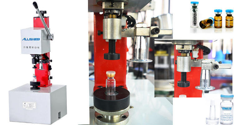This manual small bottle cap locking machine is mainly used for small cylindriod vials, penicillin bottle, oral liquid bottle, bird's nest bottle aluminum cover sealing etc.