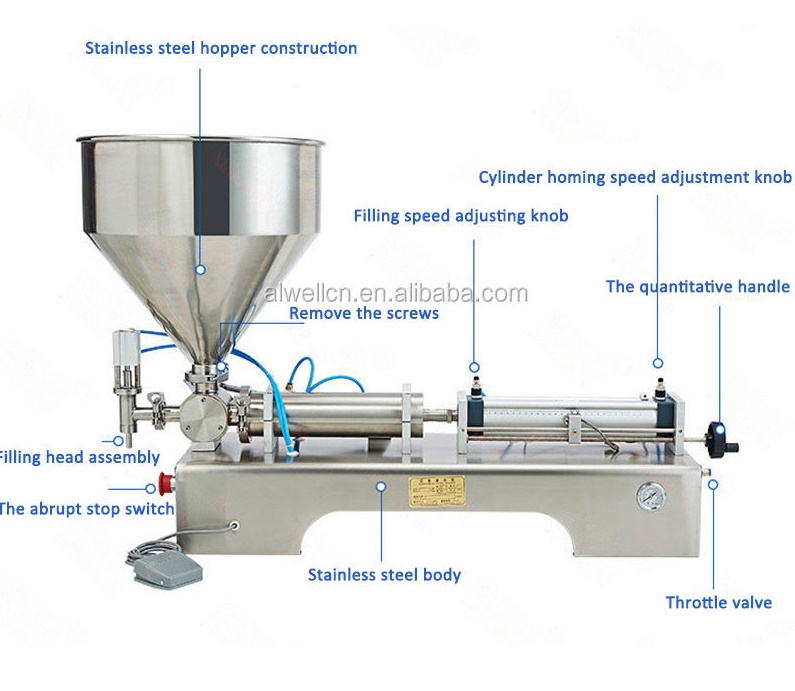 G1WGD10-100 Customized Semi Automatic Manual 304 Stainless Steel Food Paste Filling Machine Price is suitable for a variety of viscous materials,widely used in pharmaceutical,chemicals for daily use,food,pesticides and special industries, is the ideal Medium and high viscosity fluid filling equipment.