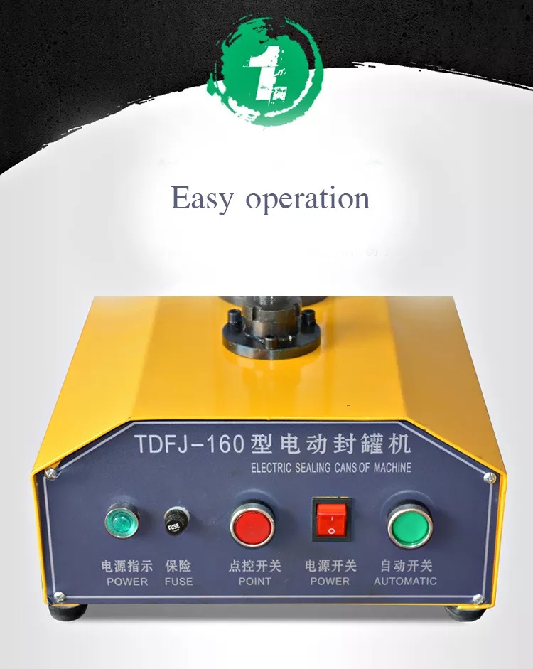This electric seamer compared with the traditional pedal lever can sealing machine,Can sealing efficiency was improved greatly,reduce the labor intensity of workers,and reduce the defective product caused by human factors,is the ideal equipment of food and beverage industry, a necessary.